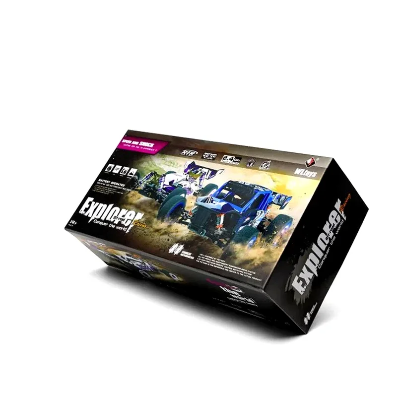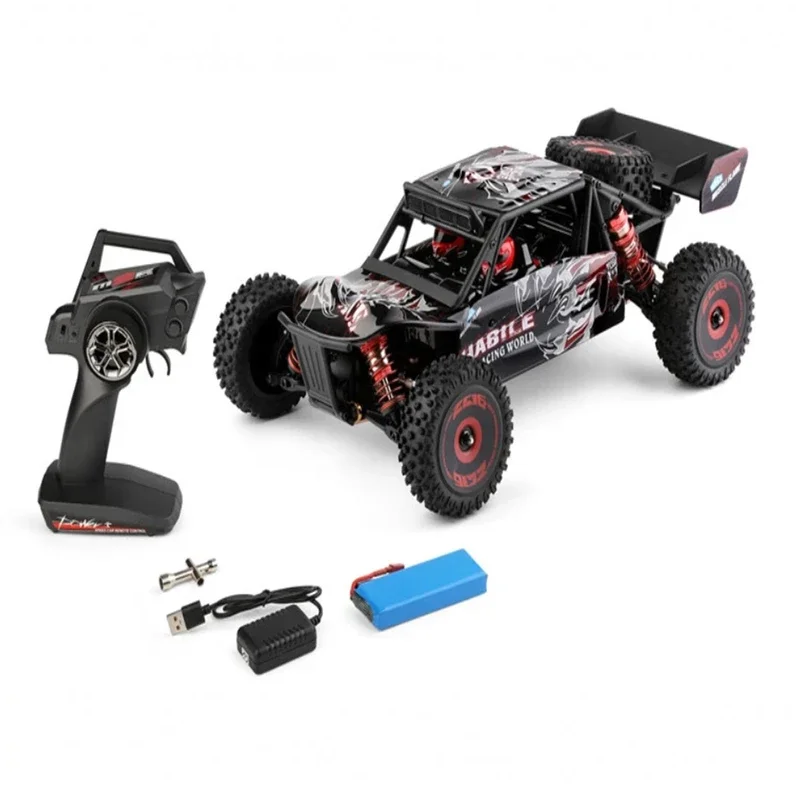 ماشین بازی کنترلی دبلیو ال تویز مدل WLtoys 124016 برای شما بهجز اینکه یک ماشین مسابقه و آفرود محسوب میشود، میتواند رویاهای شما را نیز درباره تحقق ببخشد. اگر شما هم علاقه زیادی بهسرعت و هیجان و بازی با ماشینهای کنترلی آفرود دارید، حتماً باید یکی این ماشین کنترلی پرقدرت را امتحان کنید. این دارای چهارچرخ انعطافپذیر و الکتریکی است که سرعت آن 75 کیلومتر بر ساعت میباشد. مقیاس این ماشین کنترلی 1:12 و مناسب جادههای آفرود و خاکی است. اگر به فکر این هستید که در جادههای گلی و خاکی ماشین گیر خواهد کرد و یا اینکه واژگون خواهد شد، اصلاً نیازی به نگرانی نیست این ماشین کنترلی جاده را برای شما درو خواهد کرد. شاسی این ماشین تماماً از جنس فلز با آلیاژ قوی ساختهشده که مناسب جادههای آفرود و خاکی و گلی است. این ماشین میتواند با سرعت 75 کیلومتر بر ساعت در این جادهها برود بدون اینکه آسیبی بدنه آن وارد شود. ریموت کنترل آن نیز از فرکانس 2.4 گیگاهرتز پشتیبانی میکند. همچنین کل بدنه به کمکفنرهای ضربهگیر مجهز شده است تا در صورت وارد شدن ضربههای سنگین به بدنه، شدت ضربه کاهش یابد. سرعت این ماشین کنترلی 75 کیلومتر بر ساعت است و از موتور بدون برس و بیسروصدا مکانیکی استفاده میکند.